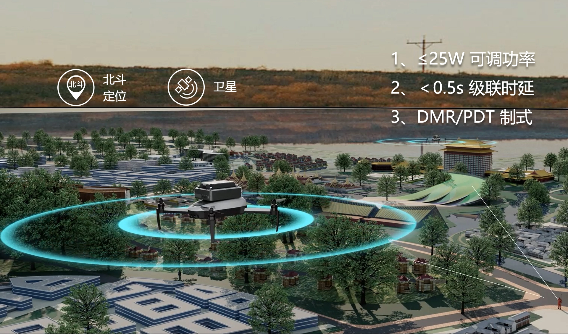 采用 DMR/PDT 标准制式,支持 AMBE++/NOVC 双声码,可与现有通信设备无缝接入,级联 4 跳后时延低于 0.5s;内置北斗定位块,通过 Type-C 串口可查看整机位置信息;发射功率≤25W 且 1W 可调,保障通信覆盖与灵活适配。